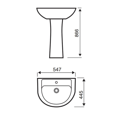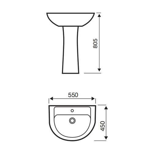 View full detailsKV Options 550mm 1 Tap Hole Basin with Full Pedestal