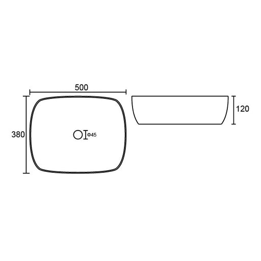 The NOVA Ceramic Rectangular Countertop Basin, measuring 500 x 350 x 120mm, offers a sleek and functional design ideal for modern bathrooms. Crafte...