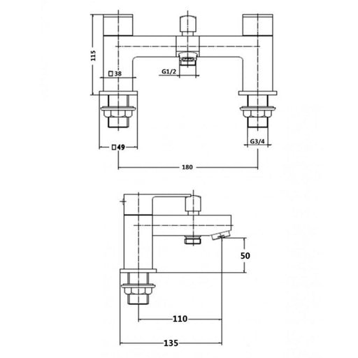 View full detailsVado T Square Bath Shower Mixer - Chrome
