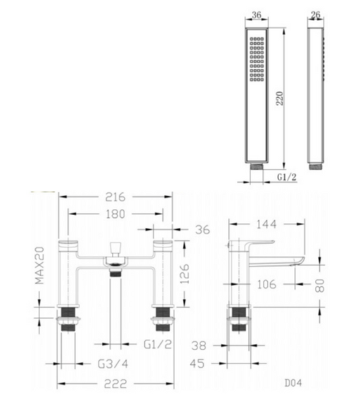 View full detailsNOVA Canada Deck Mounted Bath Shower Mixer Inc Handset - Select Colour