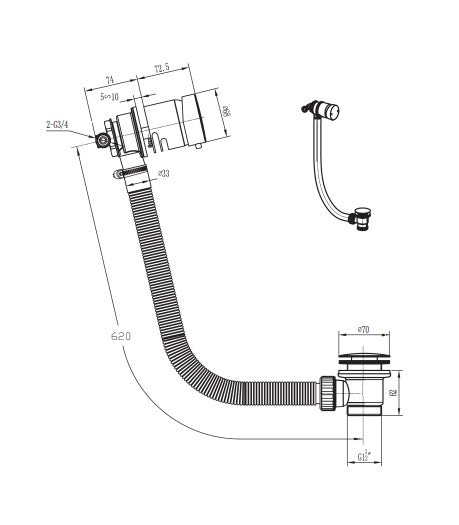 Upgrade your bath experience with our Carron Brushed Brass Sprung Bath Waste & Overflow. Effortlessly keep your bathtub clean and clog-free wit...