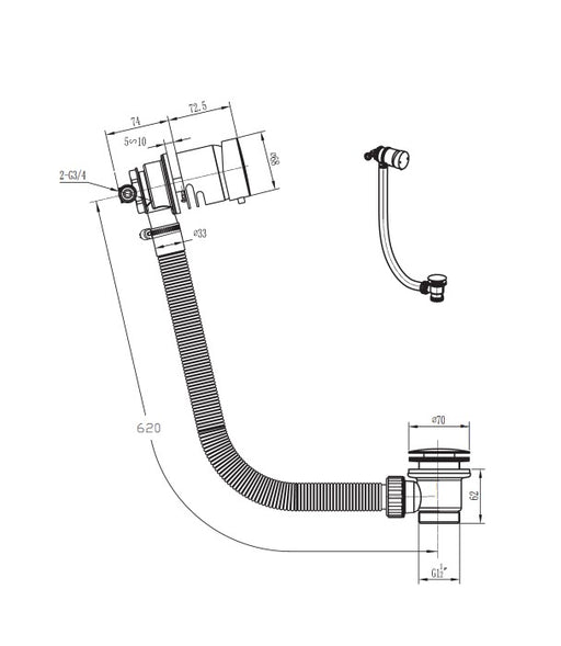 Elevate your bathtub's functionality with the Extended Bath Pop-Up Waste in polished chrome. This innovative waste solution combines a stylish desi...