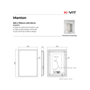 Upgrade your bathroom with the KV Manton 700 x 500 LED Mirror, combining style, innovation, and practicality. This sleek, wall-mounted mirror features 3-tone ambient lighting, allowing you to customize the brightness and color temperature to suit your mood or time of day. The integrated sensor switch provides easy, touch-free control for a modern user experience.