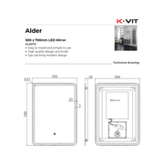 Crafted from durable glass with a chrome finish and IP44 rated for safe bathroom use, the KV Alder LED mirror combines practicality with refined style — and comes backed by a 2-year guarantee.