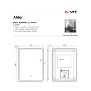 KV Alder Rectangular LED Mirror – 3 Tone Light, Demister, Sensor Switch - Various Sizes