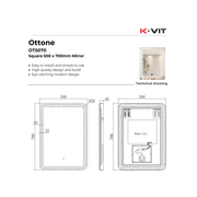 The KV Ottone 700 x 500mm Square LED Mirror blends luxury and performance with its elegant brushed brass finish and advanced features. Designed to elevate any bathroom space, this wall-mounted mirror offers 3-tone ambient lighting—choose between warm, daylight, and bright settings to match your mood or routine.