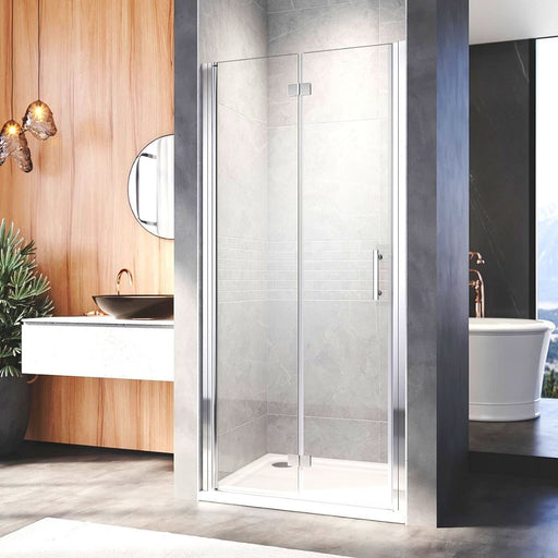 View full detailsLinea Chrome Frameless Bi Fold Shower Door 6mm Clear Glass - Select Size
