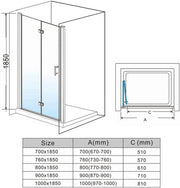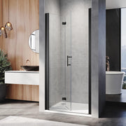 Transform your bathroom with the Linea Black Frameless Bi-Fold Shower Door – a sleek, space-saving solution crafted from 6mm tempered safety glass and finished in striking black hardware. This modern bifold shower screen folds inward to maximize space, making it perfect for compact or stylish bathroom settings.