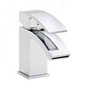 Kartell Flair Basin Mixer with Click Waste is a single lever basin mixer with square body styling and slim curved single lever and spout. The simple lift and turn lever delivers a modern waterfall style flow from the spout adding a touch of 'Flair' to any bathroom. Solid brass build and a Polished Chrome finish this range is supported by a manufacturers lifetime guarantee. Suitable for all plumbing systems. Click waste included as standard.