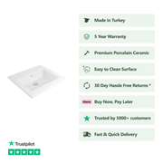 Banyetti Entre 600mm No Tap Hole Wall Hung Basin - Gloss White