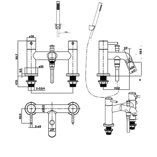 The NOVA Windon Wall Mounted Basin Mixer with two tap holes and a matching plate offers a sleek and efficient solution for your bathroom. Designed ...