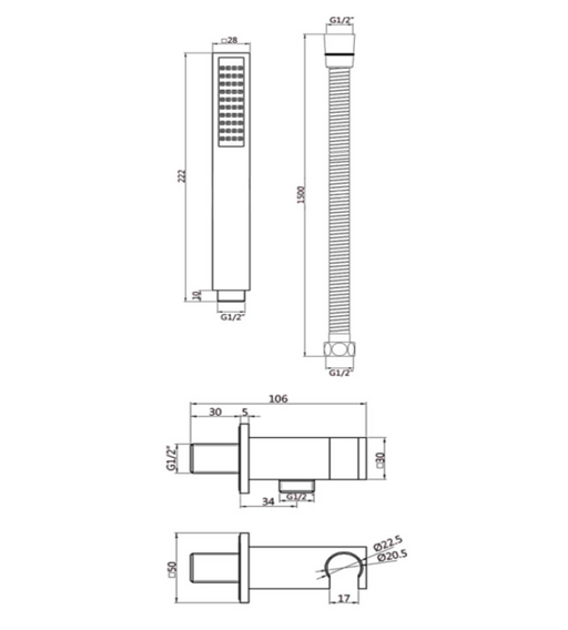 View full detailsNOVA Square Shower Handset Kit with Bracket & Hose – Select Colour