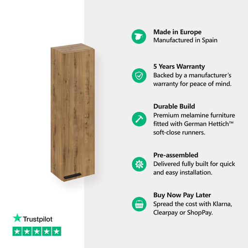 Banyetti ®The Banyetti Celtic 700mm Wall Hung Mini Storage Cabinet in Ostippo Oak is a sleek and compact solution for adding vertical storage to your bathro...
