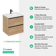 The Akiro Wall Hung Vanity Unit in a rich Walnut finish combines contemporary styling with functional elegance. Featuring Matt Anthracite Handles and crafted from durable melamine board, the Akiro unit is designed to endure daily use while making a statement in any bathroom. With high-capacity drawers, soft-close Hettich hinges, and a versatile basin or worktop selection, it offers the perfect blend of performance and sophistication.