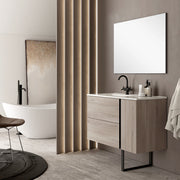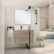 The Evora Wall Hung Vanity Unit in Iron Oak combines deep, industrial-inspired tones with modern bathroom functionality. Featuring a premium prebuilt carcass, soft-close drawer and door, and sleek Matt Black Handles, this vanity is a sophisticated space-saving solution. Designed with an offset Lira Basin (Left Side Sink) for added functionality, it offers versatile storage and contemporary appeal. Optional black designer leg available for added style and support.