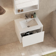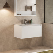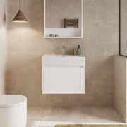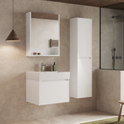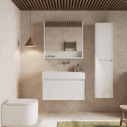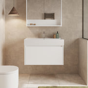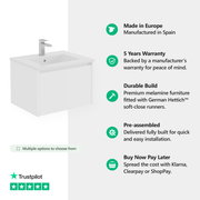 The Mino Wall Hung Vanity Unit in Gloss White is designed for both style and performance. Its inset handle design creates a clean, contemporary look while offering easy access to storage. Built with metal drawer insert, the unit is resistant to water damage and daily wear, ensuring long-term durability. High-quality Hettich hinges, widely used in demanding environments such as kitchens, provide smooth, reliable operation. Finished in high gloss white, this floating vanity is available in a range of widths and can be paired with either a porcelain basin or a matching worktop for countertop basin setups.
