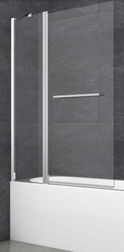 Upgrade your bathroom with the 950 x 1400 Square Straight Bath Screen featuring an extension and an integrated towel rail in polished chrome. This modern bath screen combines sleek design with practical features, offering a stylish solution to keep your bathing area dry and your towels conveniently accessible.