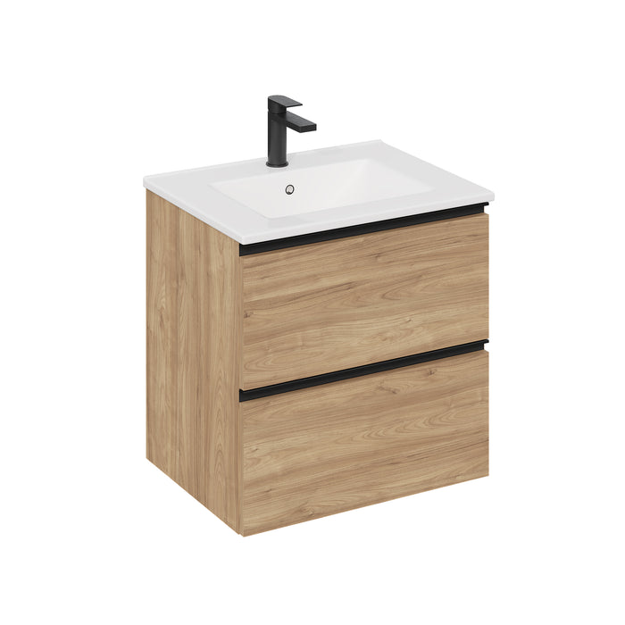 Banyetti Akiro Walnut Wall Hung Vanity Unit with Matt Anthracite Handles - Select Size