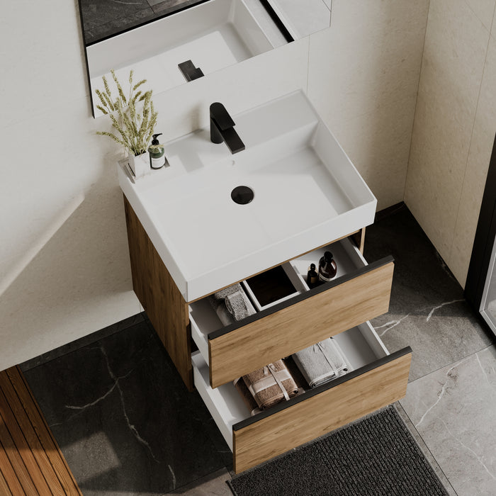 The Akiro Wall Hung Vanity Unit in a rich Walnut finish combines contemporary styling with functional elegance. Featuring Matt Anthracite Handles and crafted from durable melamine board, the Akiro unit is designed to endure daily use while making a statement in any bathroom. With high-capacity drawers, soft-close Hettich hinges, and a versatile basin or worktop selection, it offers the perfect blend of performance and sophistication.