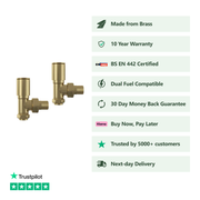 Add a touch of sophistication to your radiator with the Angled Radiator Valves in Brushed Brass. These valves are specifically designed to work with Aureli / Luxe Radiators.
