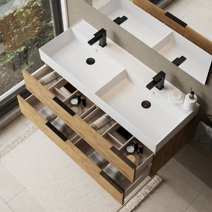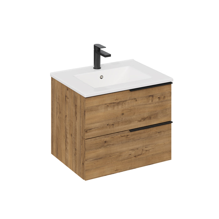 Banyetti Celtic Ostippo Oak Wall Hung Vanity Unit with Matt Black Handles - Select Size