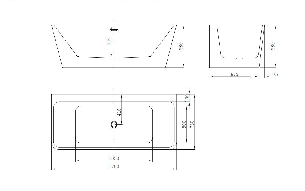 Banyetti London 1700 x 750 Back to Wall Freestanding Acrylic Bath - White