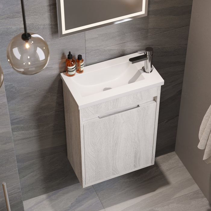 - 390mm Wall Hung Cloakroom Vanity Unit – White Oak