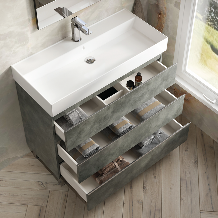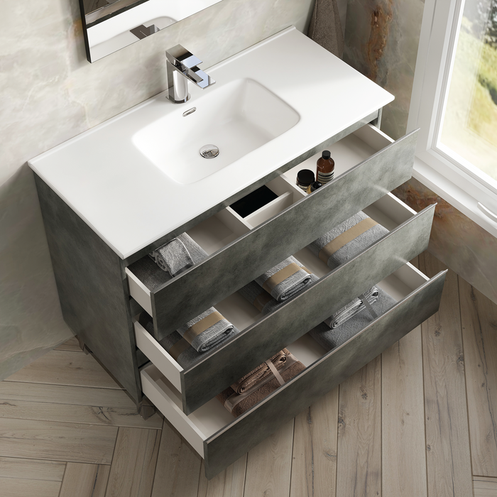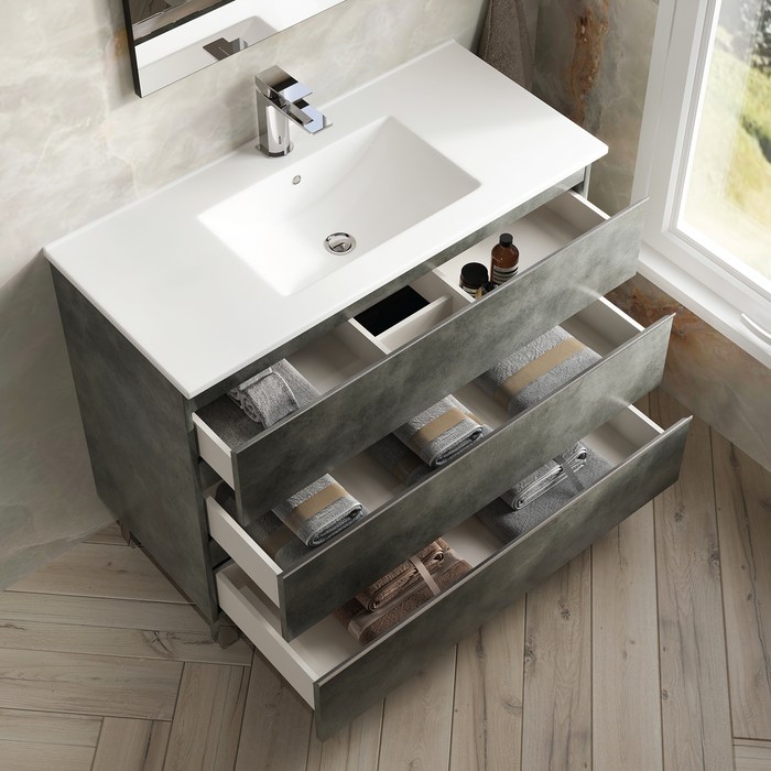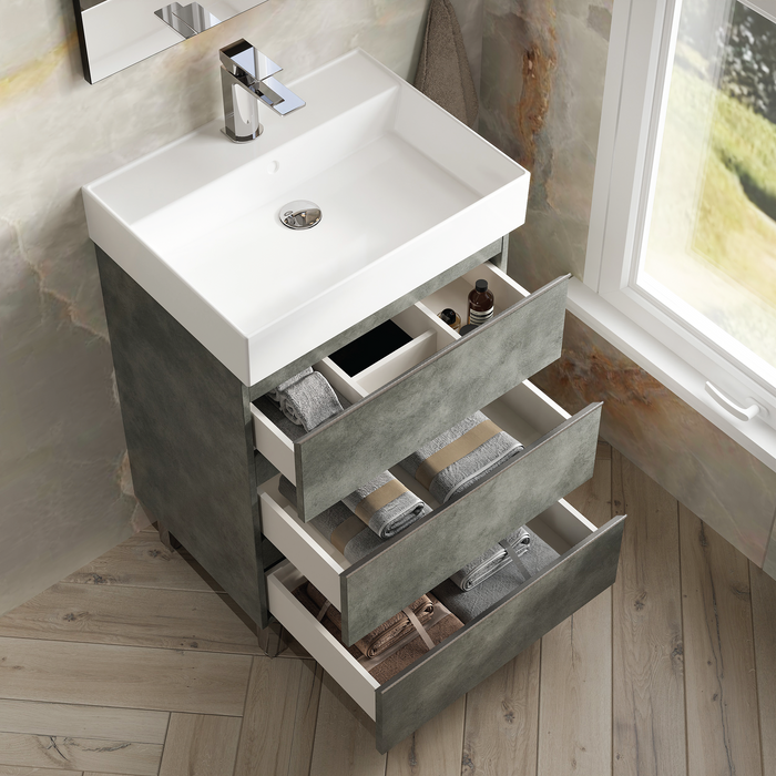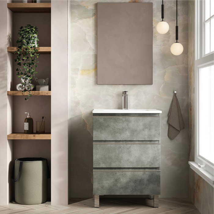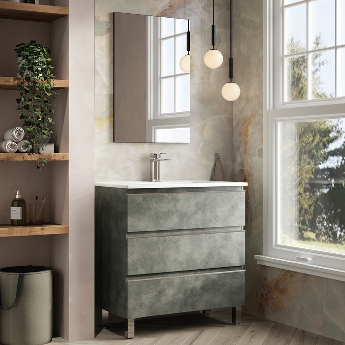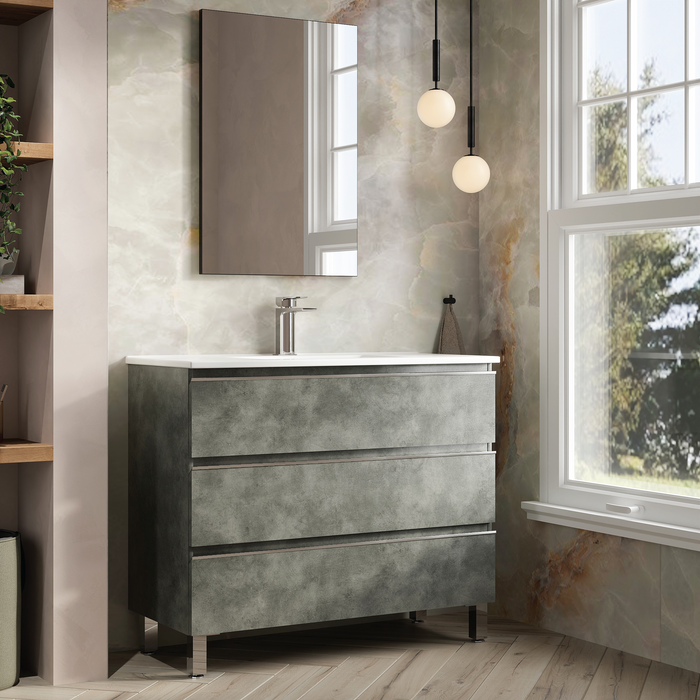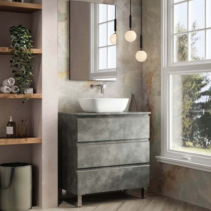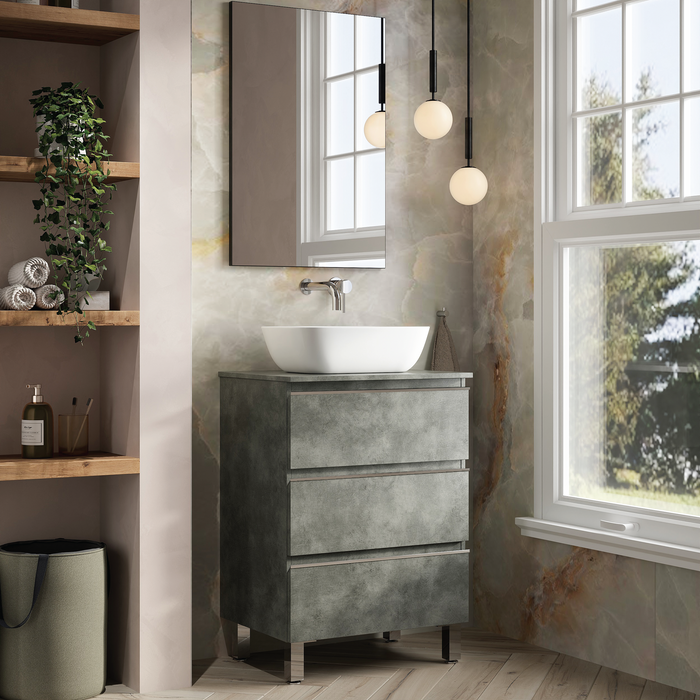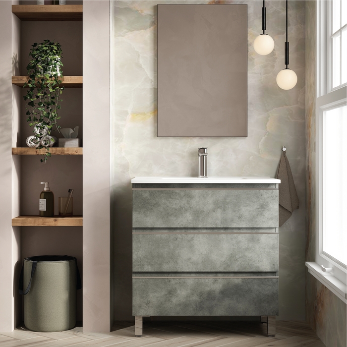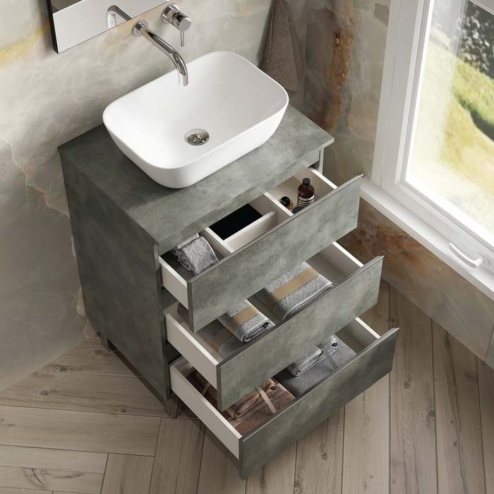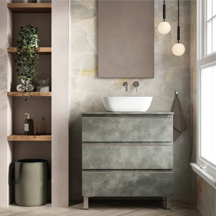 - Floorstanding 3-Drawer Vanity Unit in Cemento finish