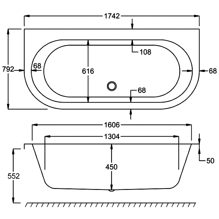 Double ended design ensures both sides of the bath can be used for relaxing in