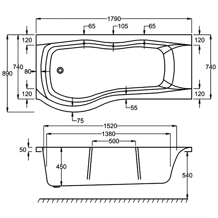 The Carron Sigma 1800 x 750/900mm Showerbath is beautifully designed.  Carronite finishes hold in the heat longer than cast iron or steel baths and are twice as strong as standard acrylic baths.
