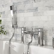 The HB Muro Deck Mounted Bath Shower Mixer with Handset offers a stylish and practical solution for your bathroom needs. Available in a selection of colours, it allows you to personalise your bathroom’s look to suit your taste. Designed for deck mounting, this mixer combines a sleek, modern design with easy installation.