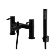 The Kartell Nero Round range of brassware is a contemporary collection of all black bathroom taps and accessories featuring smooth curves and a matt finish. This Bath Shower Mixer features a long tubular handset connected to the spout of the bath filler, operated by the two turning handles on the pillars of the bath filler. Backed by a lifetime guarantee and suitable for all plumbing systems. Waste not included.