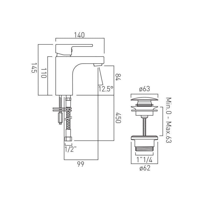 Fittings: 2 x 1/2” 400mm Flexipipe Connections
